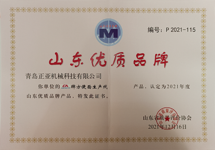 為深入貫徹落實黨中央、國務院《關于開展質(zhì)量提升行動的指導意見》和省委省政府實施計劃的有關精神,促進提高產(chǎn)品質(zhì)量和服務質(zhì)量,實施質(zhì)量強省和品牌戰(zhàn)略,助推供給側結構性改革,山東省質(zhì)量評價協(xié)會組織開展了2021年度山東優(yōu)質(zhì)品牌培育認定工作,經(jīng)資格核查、材料(網(wǎng)絡)評審、專家審議、征求各方意見等多個環(huán)節(jié)的嚴格認定,于近日公布了2021年度山東優(yōu)質(zhì)品牌名單,青島正亞機械科技有限公司的“CA ZHENGYA”方便面生產(chǎn)線獲評“2021年度山東優(yōu)質(zhì)品牌”。